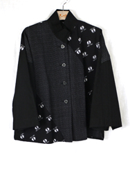 絣切替ショートブラウス